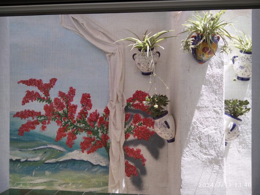 Las camas son regulables en altura. Los piecero/cabecero se pueden ajustar por separado. Hay disponible una grua de elevación. Las camas se pueden colocar de diferentes maneras. Vista desde la cama al patio.